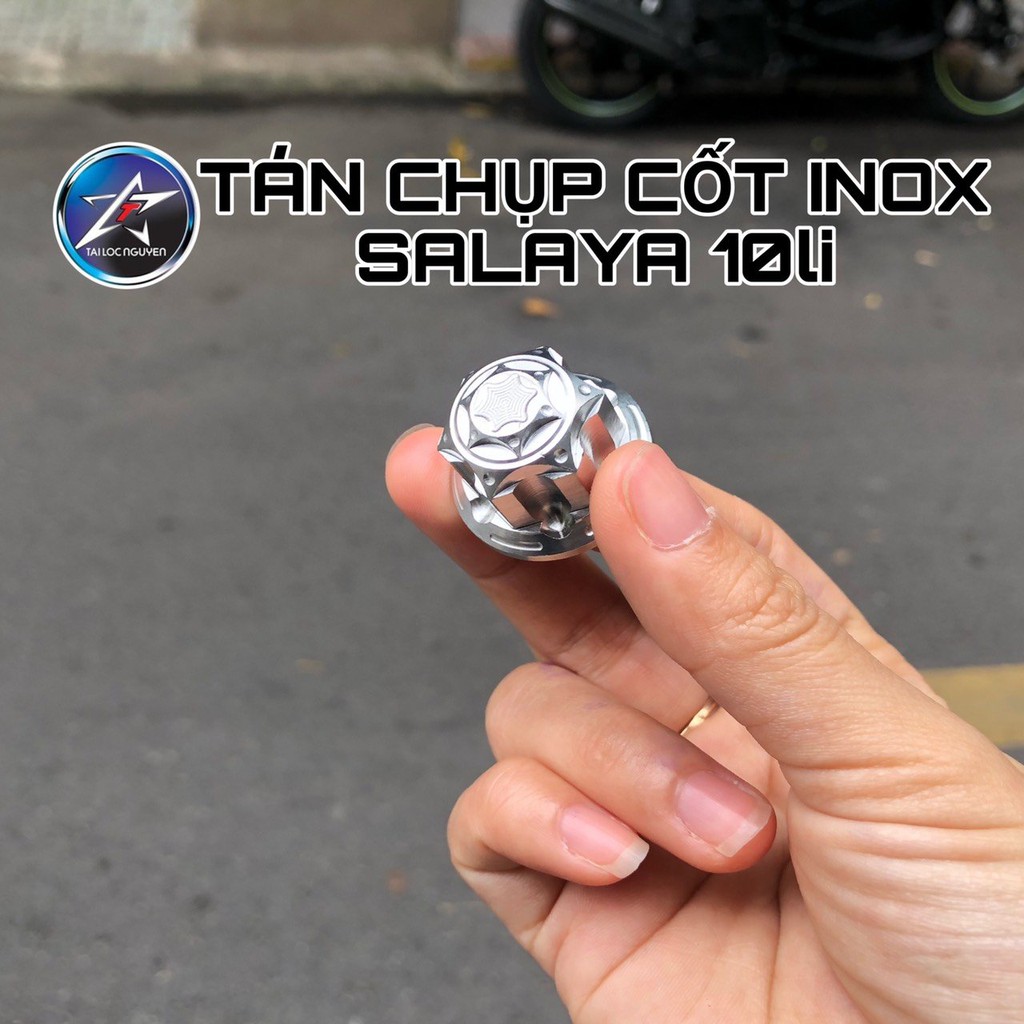 _ Tán chụp cốt inox salaya 10li , 12li , 14li , hàng inox salaya chất lượng cao được sử dụng công nghệ mạ điện tỉ mỉ từng khuôn đúc_ Tán sử dụng phù hợp cho các dòng xe như : Exciter , Winner , Wave ,Sirius , AB , Vario , Dream , ....