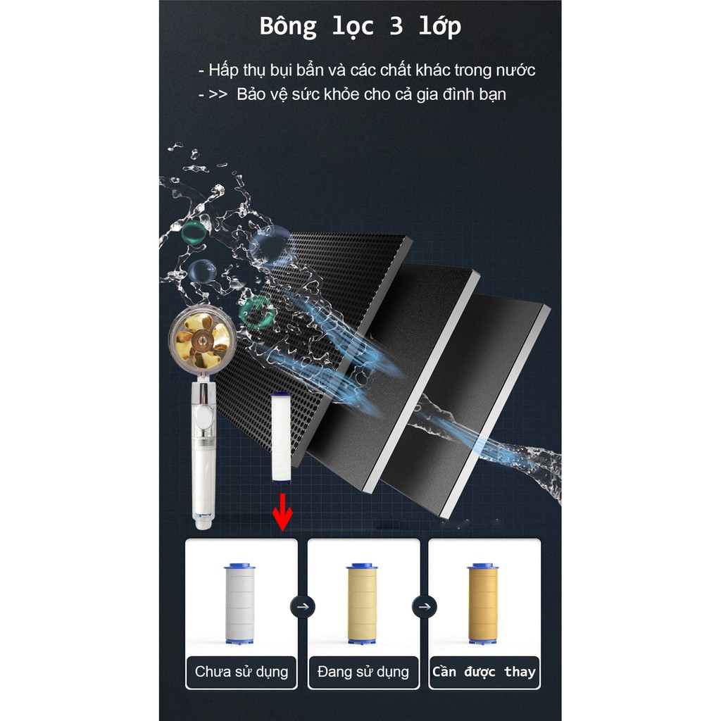 Giới thiệu [Tặng 1 dây sen] Vòi Hoa Sen Kết Hợp 2 Chế Độ Vòi Tăng Áp và Phun Sương Massage VS001