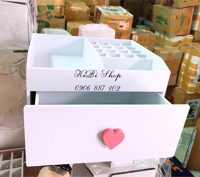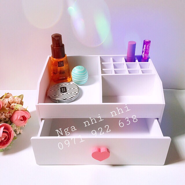 Giới thiệu [Tặng 1 Hủ Đựng Cọ] Kệ mỹ phẩm trắng núm trái tim siêu cute