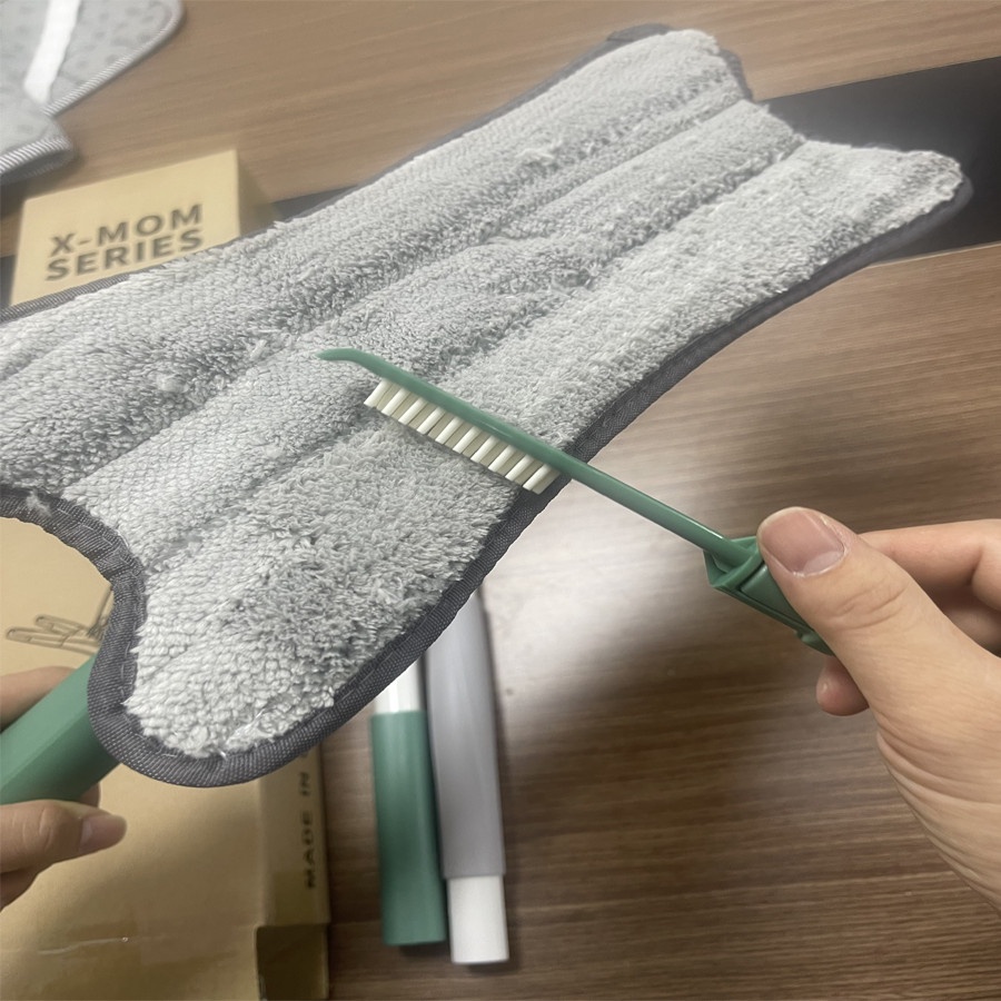 - Trên đầu thân chổi có 1 cây bàn chải, để dễ dàng quét được bụi bẩn khỏi miếng lau.
