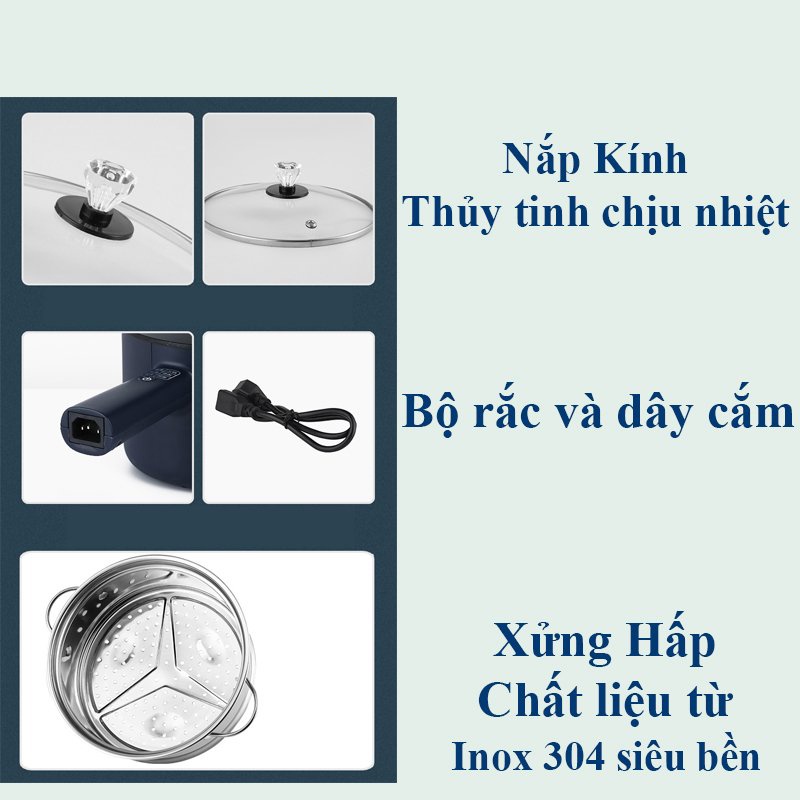 - Vật liệu hấp: Nắp trên bằng kính cường lực thép không gỉ 304