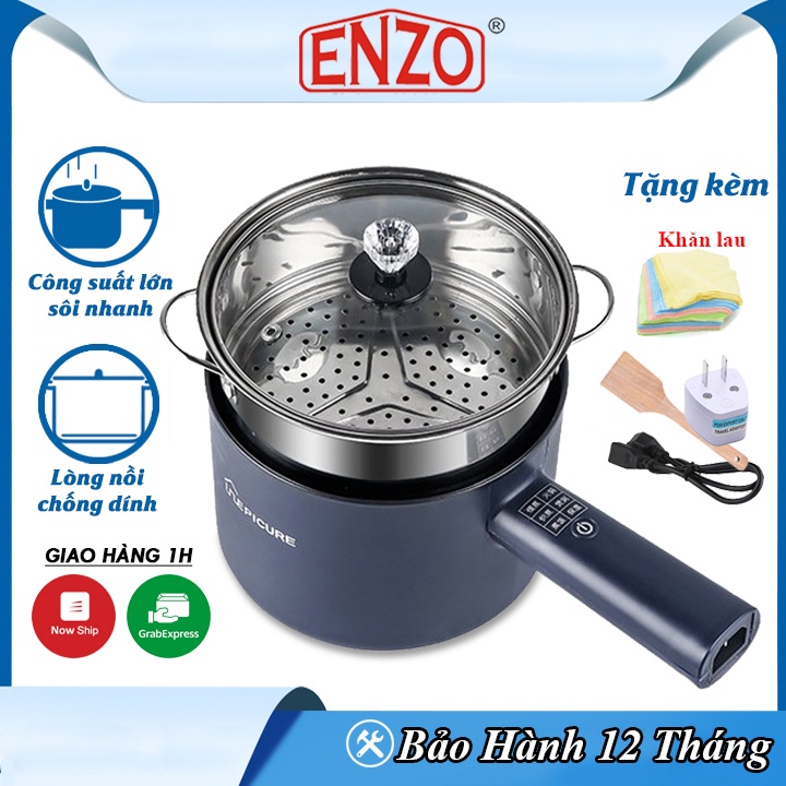 [TẶNG 10 MÓN] Nồi Điện Đa Năng EPICURE Dung Tích 1.8L Chống Dính, Nồi Lẩu Điện 2 Tầng Chảo Lẩu Điện Mini Có Xửng Hấp