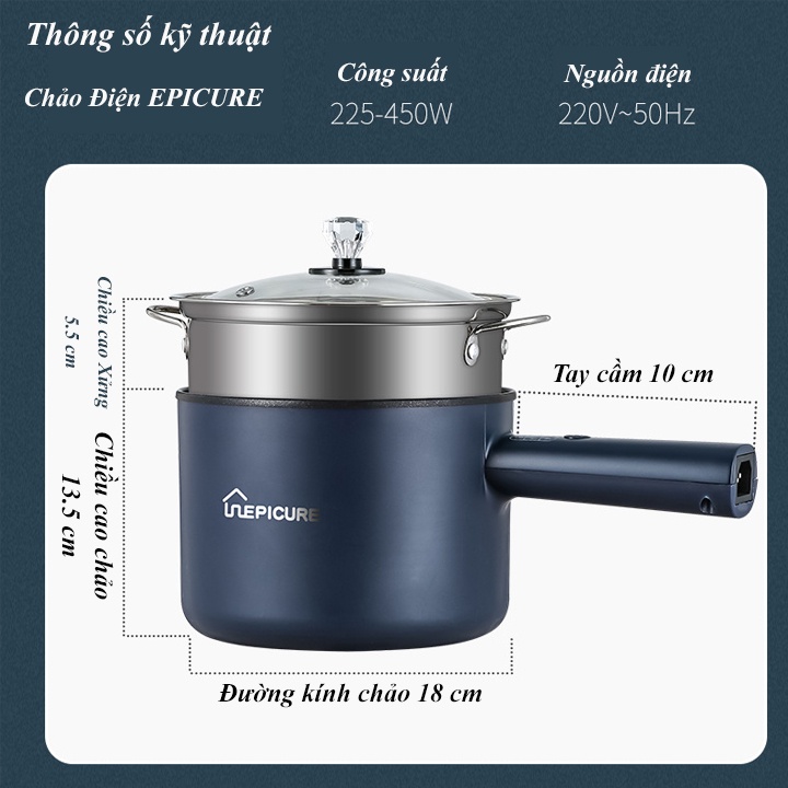 - THÔNG SỐ KỸ THUẬT : Chảo Điện Đa Năng Chống Dính EPICURE