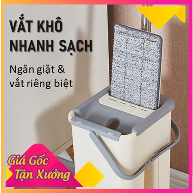 Giới thiệu [TẶNG 2 BÔNG LAU] Cây Lau Nhà Thông Minh Tự Vắt Đầu Xoay 360 Độ Ngăn Giặt - Vắt Riêng Biệt Siêu Sạch