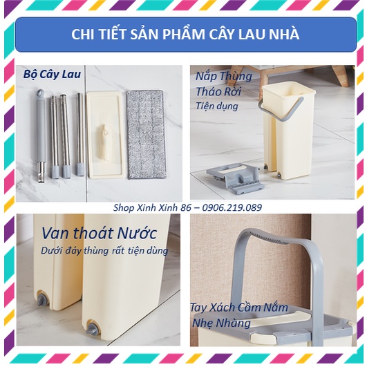 - Thùng giặt với 2 ngăn là ngăn giặt và ngăn vắt riêng biệt rất tiện dụng, Cán chổi lau bằng inox 304 không gỉ, chỗ cầm tay siêu êm siêu chắc chắn giúp cho tư thế lau nhà được thoải mái.
