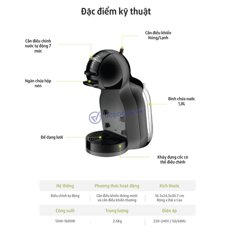 • Thông số sản phẩm: Máy pha cà phê viên nén Nescafe Dolce Gusto - MiniMe