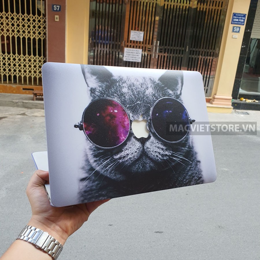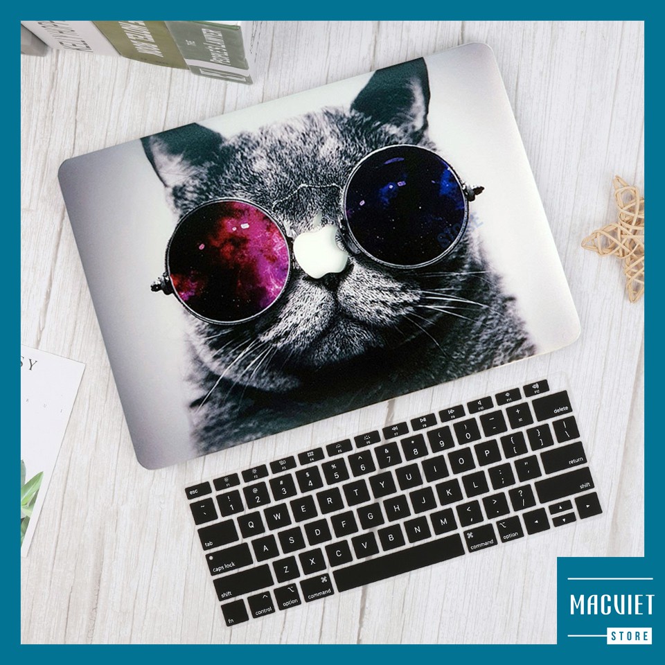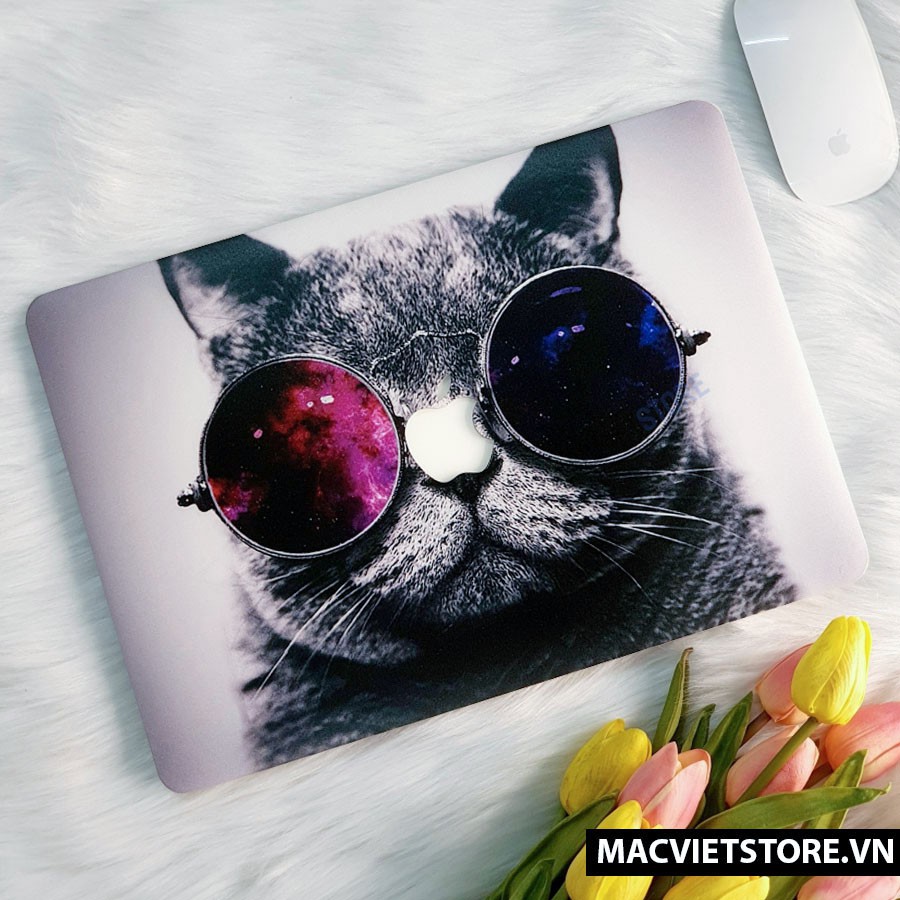 [Tặng 3 Món] Combo Ốp Macbook, Case Macbook Hình Mèo Đeo Kính (Tặng Kèm Lót phím, Nút Chống Bụi , Kẹp Chống Gẫy Sạc)