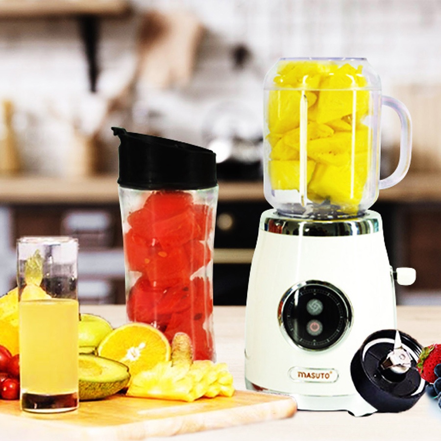 Máy xay sinh tố đa năng Masuto Blender 2 cối 0,6L say đá hạt siêu nhuyễn mịn chỉ 10s TẶNG 30 KHẨU TRANG 4D
