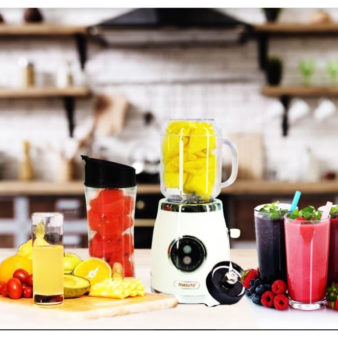 Giới thiệu Máy xay sinh tố đa năng Masuto Blender 2 cối 0,6L say đá hạt siêu nhuyễn mịn chỉ 10s TẶNG 30 KHẨU TRANG 4D