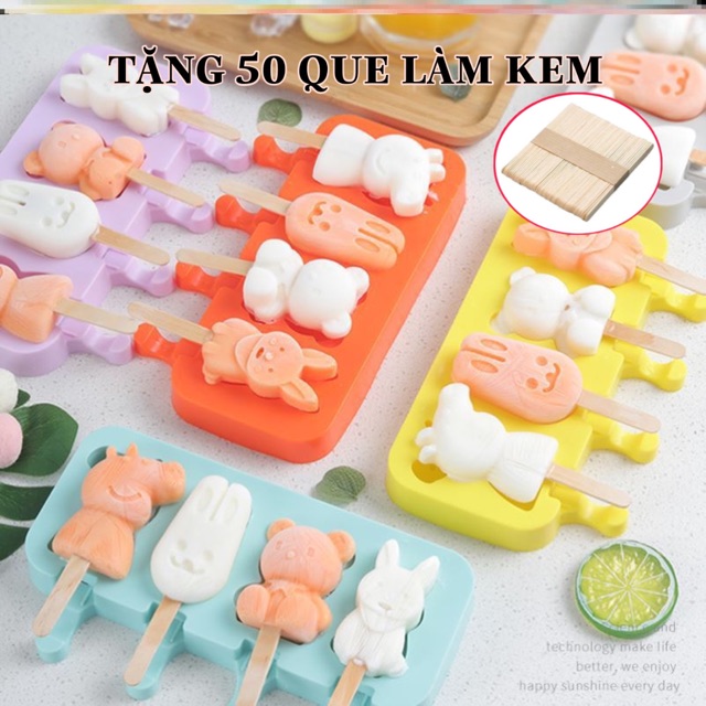[TẶNG 50 que] Khuôn làm kem silicon có nắp đậy màu tím/đỏ