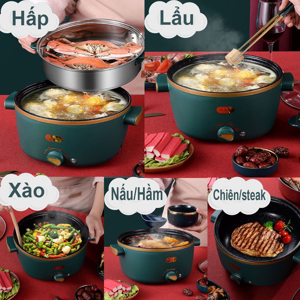 [TẶNG 7 MÓN QUÀ] Nồi Lẩu Điện Đa Năng ARISON (Lẩu, Nấu, Xào, Chiên,Hấp,Nấu Cơm,Nấu Cháo..)Mini Tiện Lợi [FREE EXTRA]