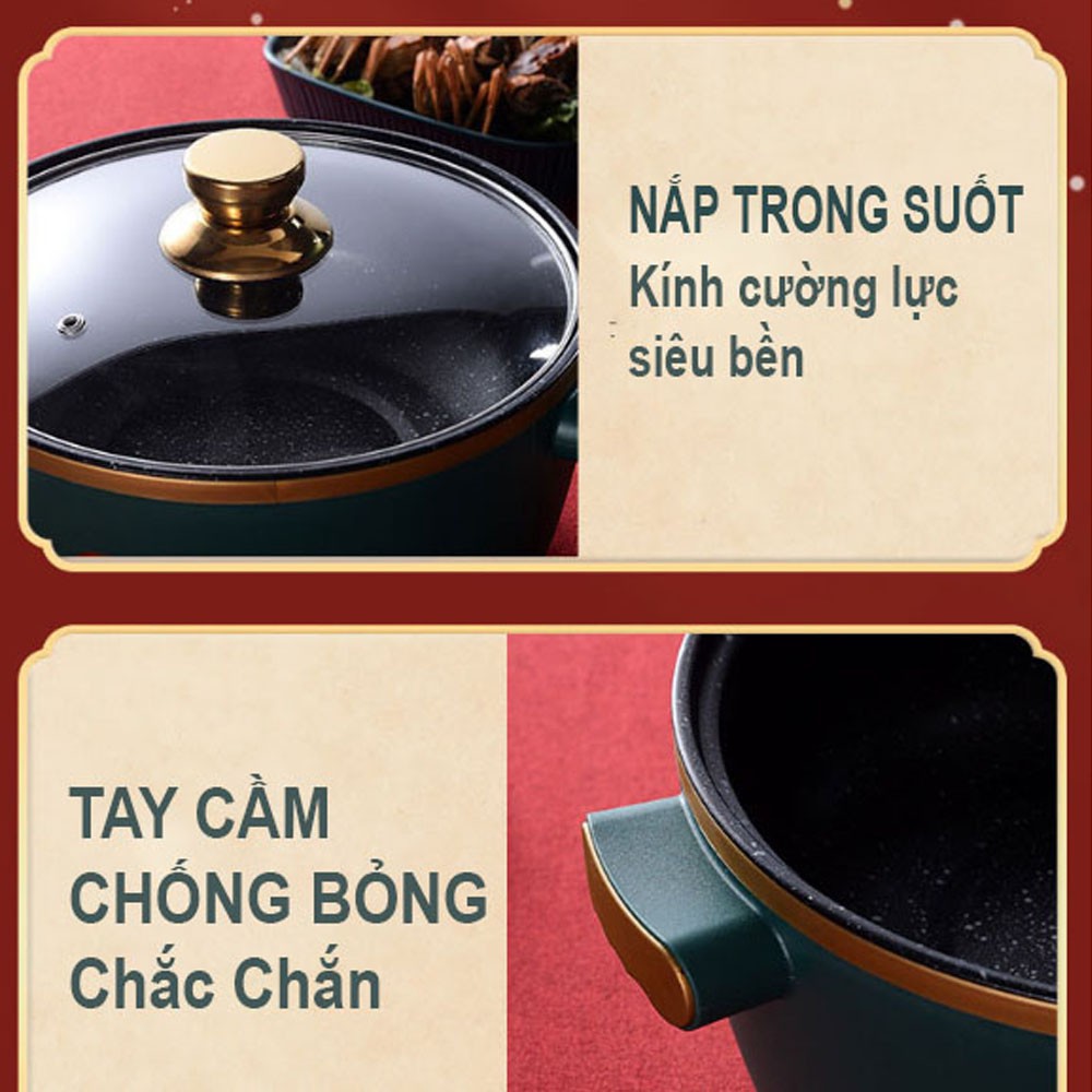 - Lòng nồi : phủ lớp vân đá hoa cương cao cấp chống dính cực hiệu quả
