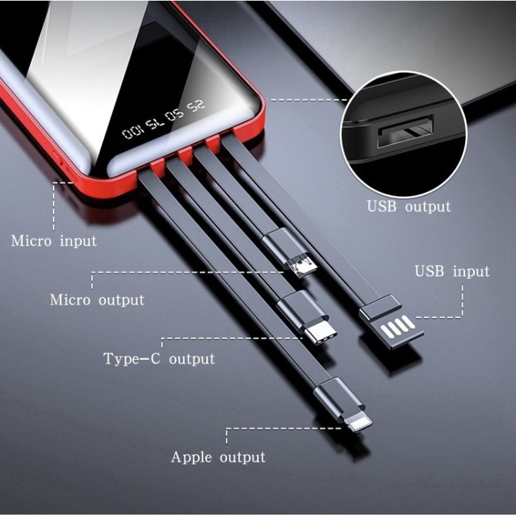 Điện Thoại & Phụ Kiện > Pin sạc dự phòng > 10000 - 20000mAh || (TẶNG BÀN CHÀI LÔNG MỀM) Sạc Dự Phòng 20000 mah Power Bank Có 4 Đầu Ra Sẵn, Tiện Mang Ra NgoàiCòn hàng