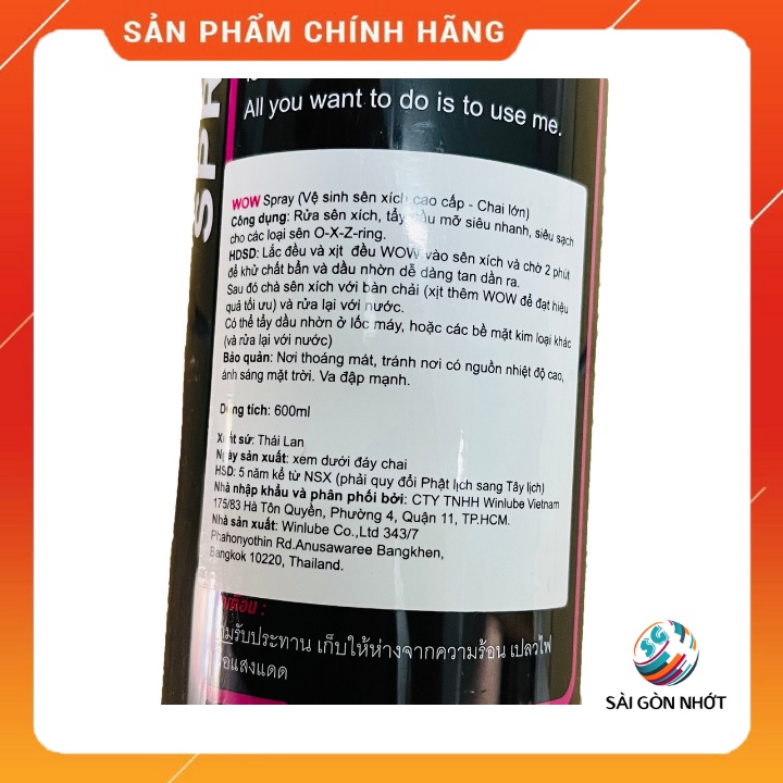 📌 Xịt vệ sinh sên Wow Spray 600ml Thái Lan - chính hãng Lube71 cao cấp