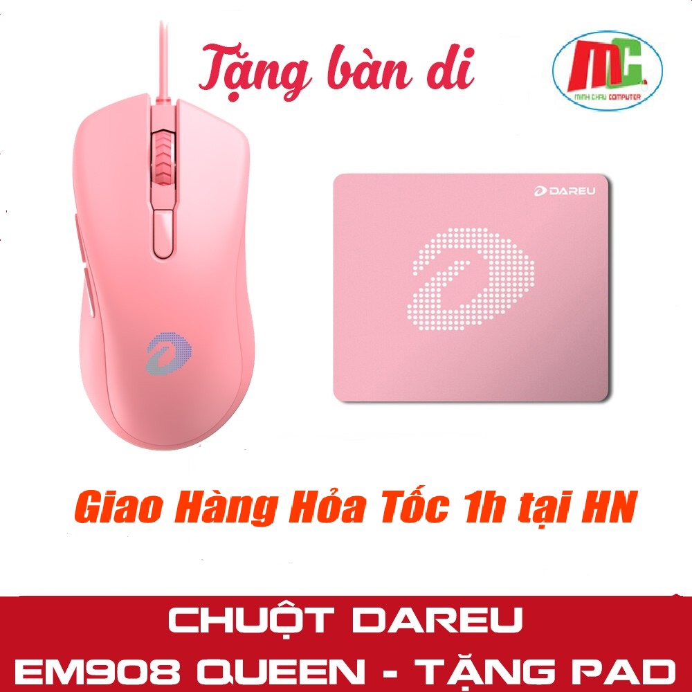 TẶNG BÀN DI CHUỘT MÀU HỒNG DAREU ESP101 (350x300x5mm)CHUỘT DAREU EM908 QUEEN PINK BẢO HÀNH 2 NĂM CHÍNH HÃNG