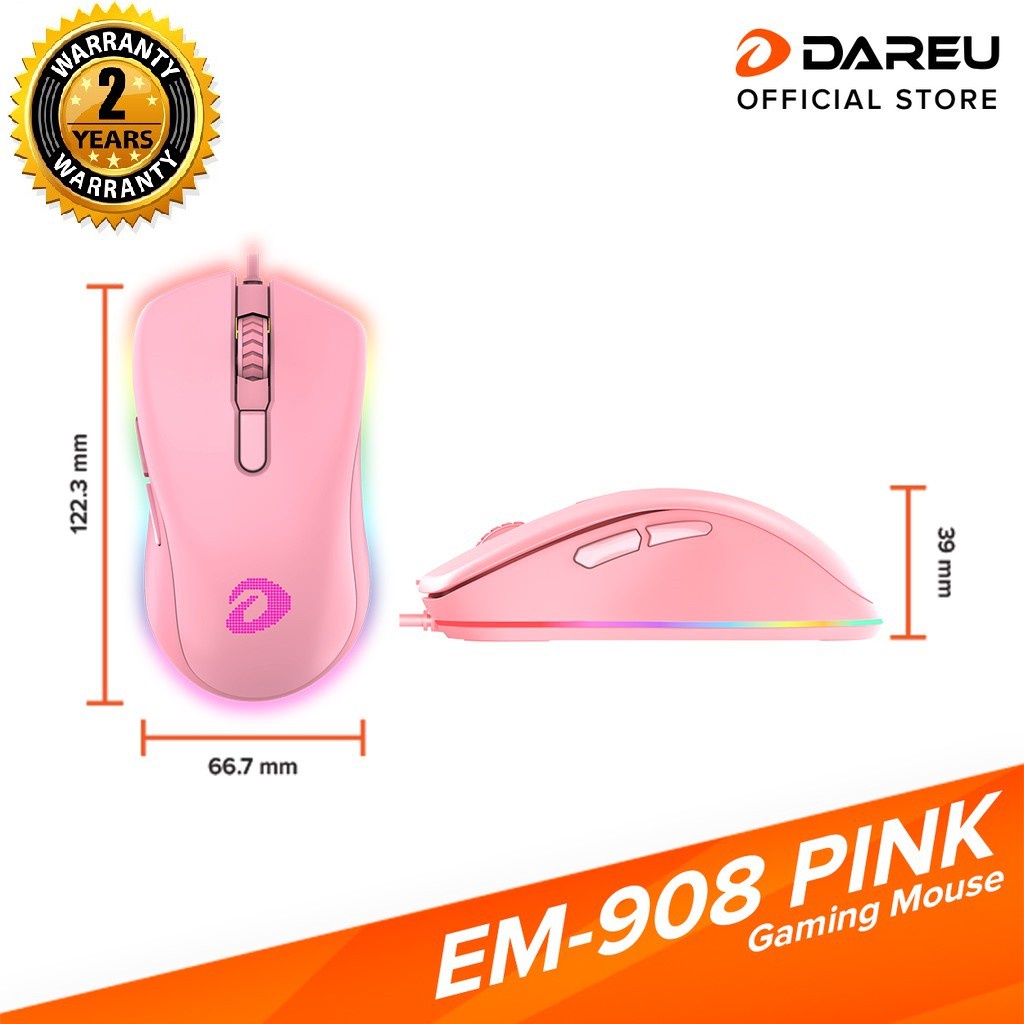 Giới thiệu [Tặng Bàn Di Chuột ESP101 Màu Hồng] Chuột Game Dareu EM908 Queen Pink RGB - Chính Hãng