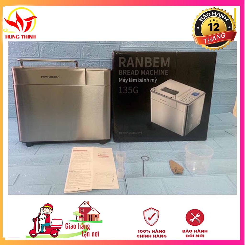 Giới thiệu [Tặng bộ 20 công thức làm bánh mỳ] Máy làm bánh mỳ Ranbem 135G đa năng tự động bảo hành 12 tháng