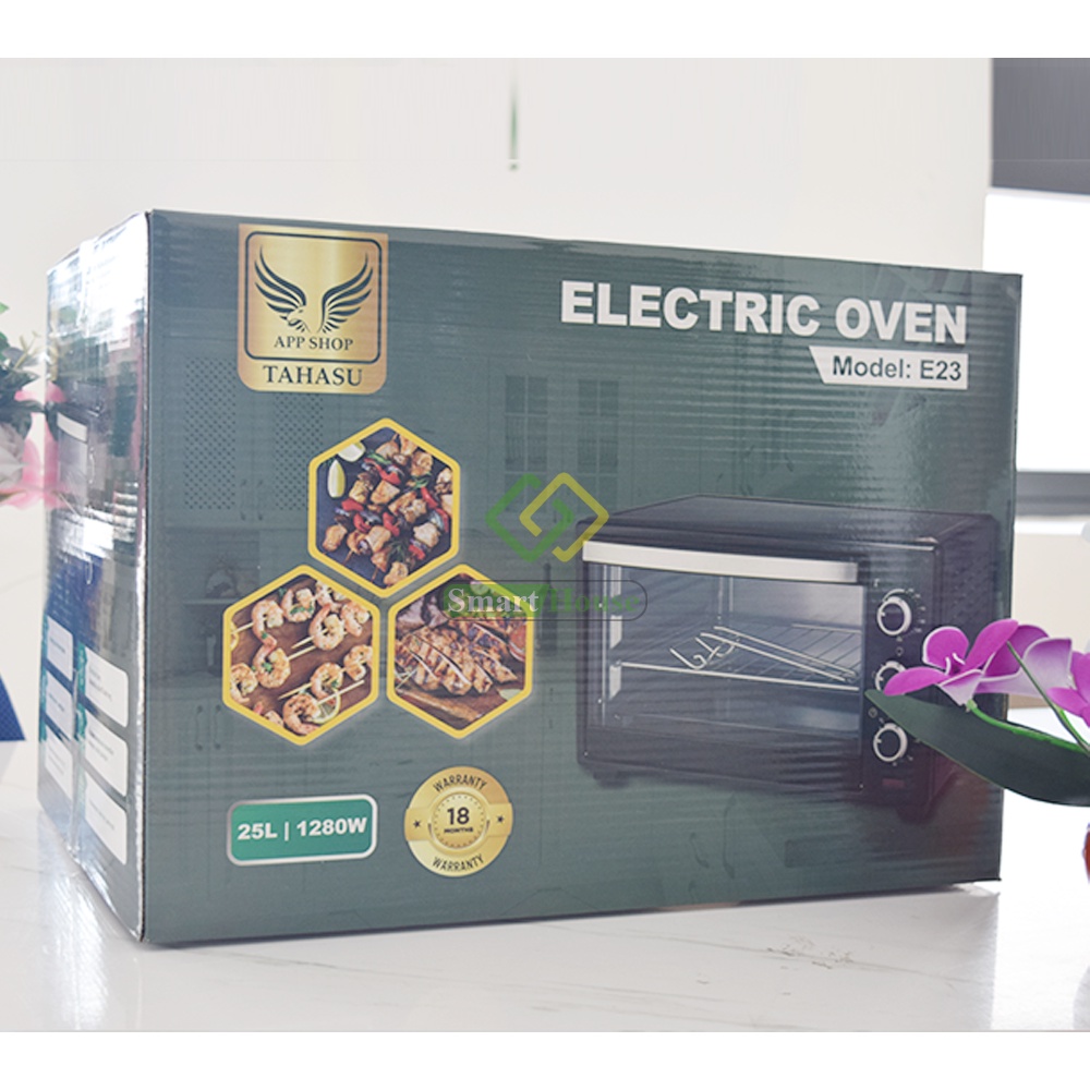 (Tặng bộ dao kéo) Lò nướng TAHASU E23 25L 1280W – Màu đen, Phù Hợp Gia Đình 2-4 Người, Điều Khiển Dễ Dàng