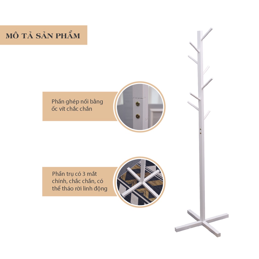 - Cây treo quần áo được làm từ 100% chất liệu gỗ tự nhiên đạt tiêu chuẩn hàng xuất khẩu.