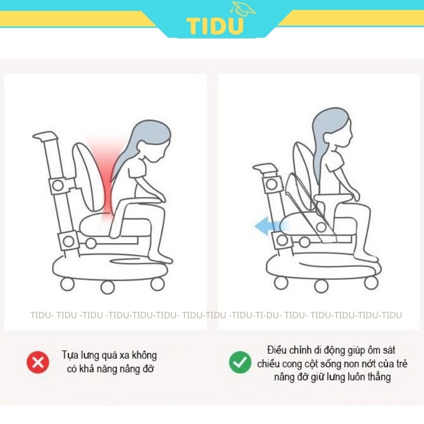 ✔ Tựa lưng tự động điều chỉnh ôm sát theo chiều cong sinh lý cột sống phù hợp mọi dáng người của trẻ nhỏ