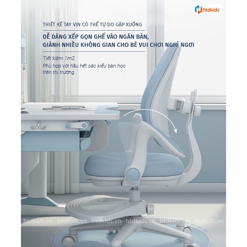 💥 Tay vịn xếp gấp di động lên xuống. Tiết kiệm không gian học tập vui chơi cho trẻThiết kế tay vịn có thể tự do gập lên xuống giúp dễ dàng cất gọn ghế vào kiểu bàn học thấp và tiết kiệm 1 m2 diện tích không gian