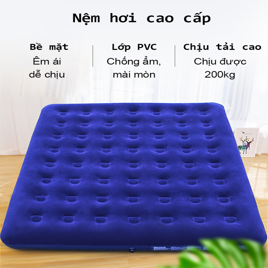 - Đệm hơi Cao Cấp phủ nhung: là giải pháp tối ưu cho những chuyến du lịch, dã ngoại cắm trại ngoài trời hoặc dành cho những vị khách bất ngờ đến thăm nhà bạn.