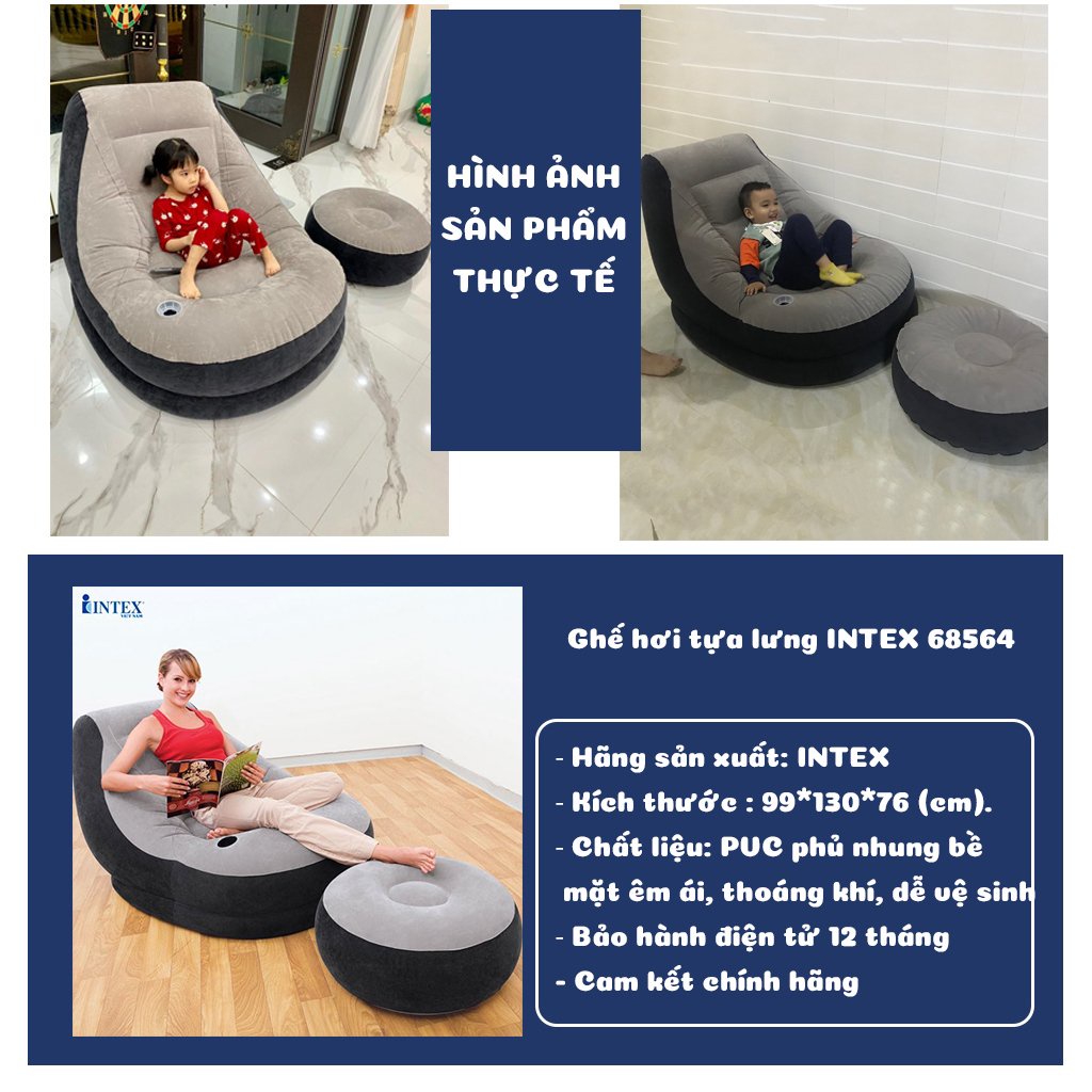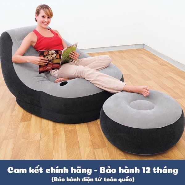 [TẶNG BƠM ĐIỆN+KEO VÁ] Ghế hơi tựa lưng cao cấp, bọc nhung, độ đàn hồi cao, bảo hành 1 năm chính hãng INTEX