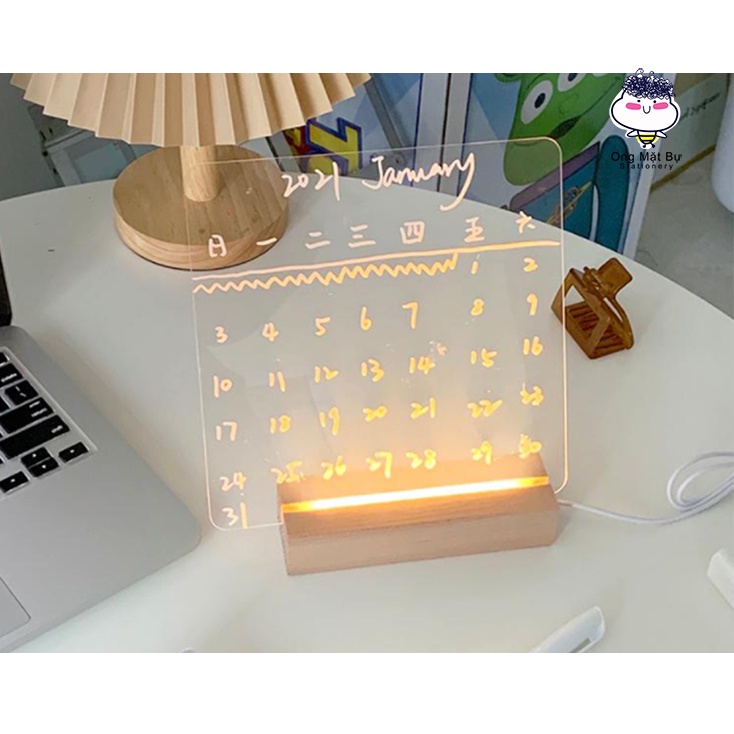 (TẶNG BÚT )Đèn bàn có bảng nhựa Acrylic đa năng - Ong Mặt Bự