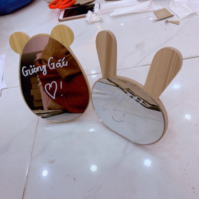 [Tặng bút] Gương gỗ trang điểm để bàn kiểu dáng Hàn Quốc có chân đế đặt bàn chắc chắn, chất liệu gỗ cao cấp