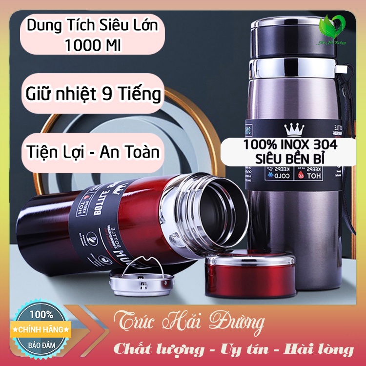 BÌNH GIỮ NHIỆT 100% TỪ INOX 304 CAO CẤP- Bình có dung tích 1000ml đủ cung cấp 90% lượng nước hàng ngày cho cơ thể ( 10% còn lại lấy từ thức ăn)