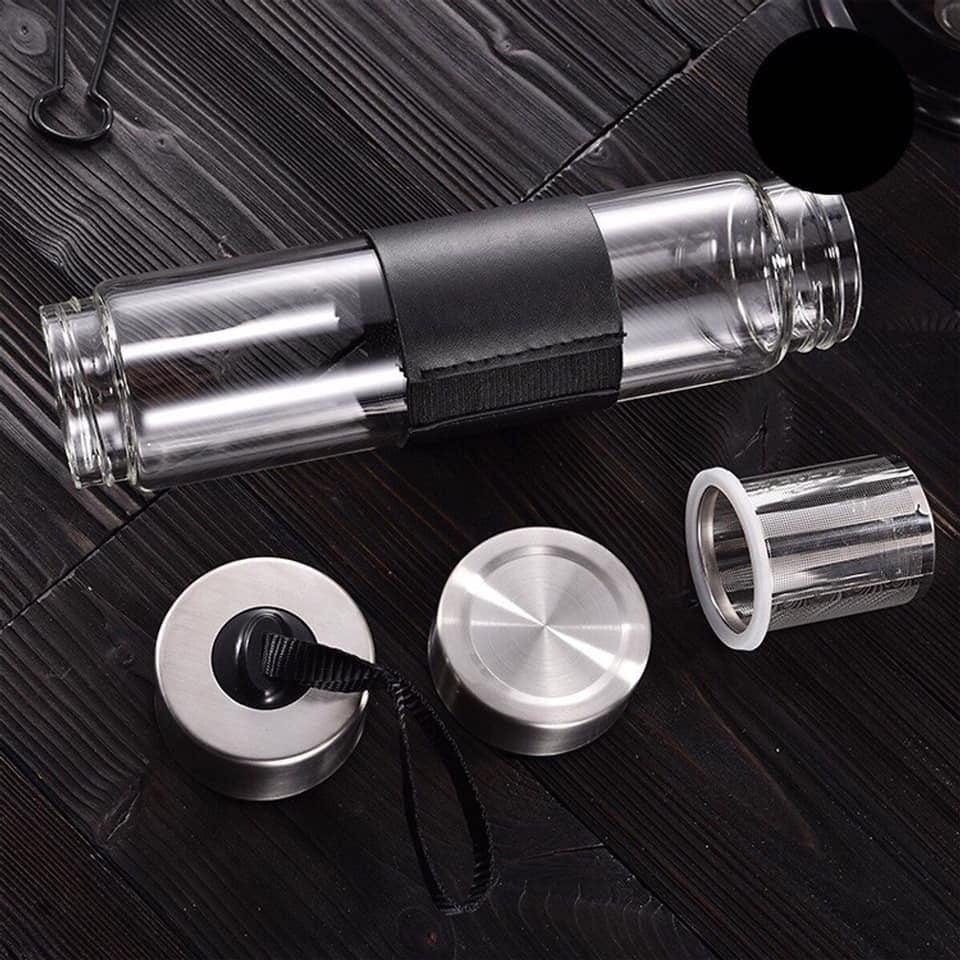 - Bình được thiết kế 2 đầu có nắp đạy chống trơn, 01 đầu để uống nước 01 đầu để lắp bộ lọc pha trà hay thảo dược rất tiện dụng.