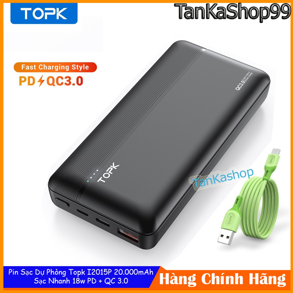 *TanKaShop99*Pin Sạc Dự Phòng Topk I2015P 20.000mAh Sạc Nhanh 18w PD + QC 3.0