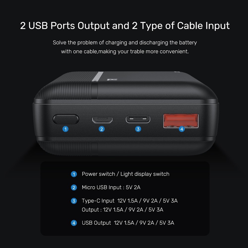 ☀ Cổng đầu vào: Type-C, Micro 5V2A / 9V2A
