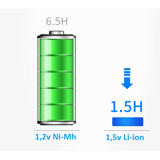 - Tốc độ sạc nhanh hơn pin Ni- Mh