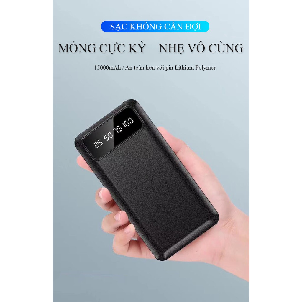Pin sạc dự phòng Cát Thái YM195 dung lượng 15000mAh cực mỏng tăng cảm giác cầm tay 2 cổng USB,2 đèn pin