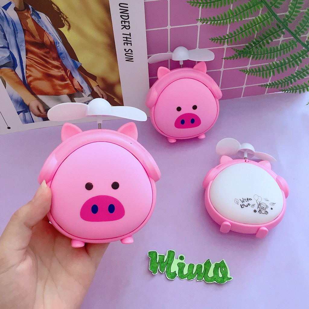[TẶNG CÁP SẠC] Quạt cầm tay tích điện heo hồng siêu cute quạt mini cầm tay