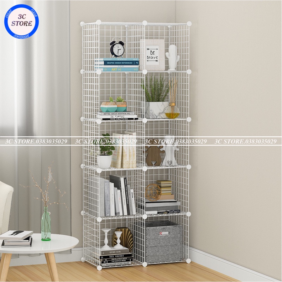 Tủ ghép lưới sắt thép đa năng hiện đại để sách, decor, trưng bày, trang trí mọi không gian