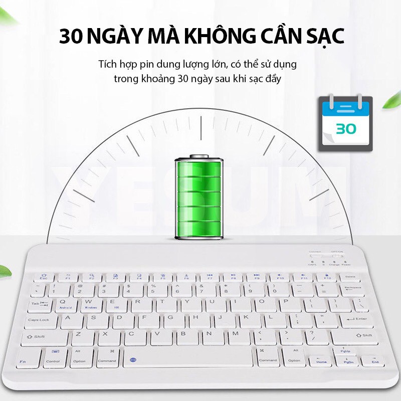 Bàn Phím bluetooth không dây mini Là bàn phím đúng chuẩn dành cho laptop Bàn phím mini sẽ một lựa chọn không thể bỏ qua dành cho bạn nhằm hoàn thành tốt công việc cũng như giải trí sau những giờ làm việc căng thẳng. Các phím ấn được thiết kế với trường phím ngắn; nhạy và êm mang lại cảm giác thoải mái khi sử dụng; đồng thời giảm mỏi tay khi bạn phải làm việc với thời gian dài. Kết nối nhanh chóng nhờ BLUEOOTH 3.0 thông dụng giúp bạn sử dụng nhanh chóng và tức thì cùng thiết bị mà không phải cài đặt thêm bất cứ phần mềm nào khác. Ngoài ra Bàn phím mini tương thích với nhiều hệ điều hành như Windows 7; Windows 8; window 10, MAC… cho bạn thỏa sức kết nối.