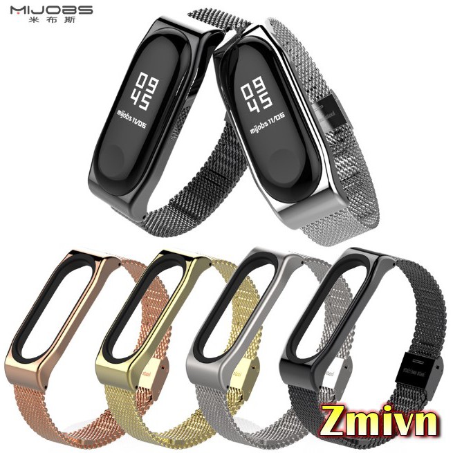 [Tặng dán màn ] Dây kim loại Xiaomi Miband 3 miband 4 khóa bấm