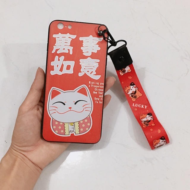 ( Tặng dây đeo) Ốp mèo thần tài iphone 6Plus , 6Splus