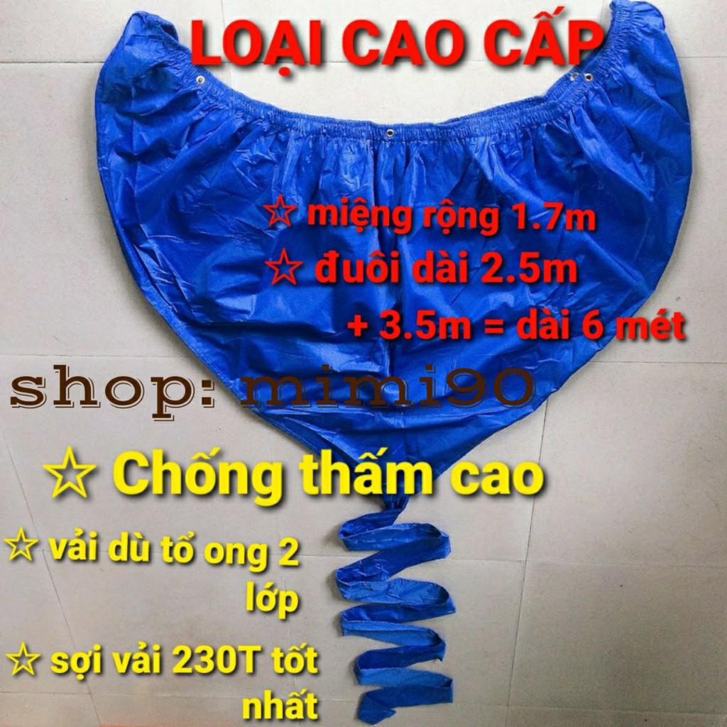 + Riêng phần đuôi dài 6m (các hộ gia đình toilet gần có thể kéo thẳng vào toilet không cần hứng xô nước), miệng áo rộng 1.7 mét