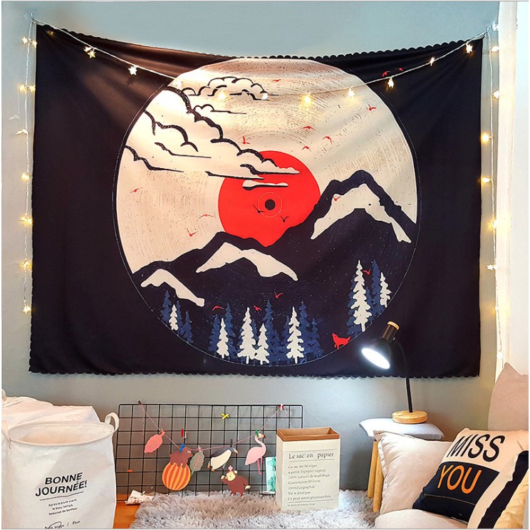 Giới thiệu [Tặng đèn 8M + móc treo] Thảm treo tường, thảm trang trí vintage, vải treo tường decor size 150x130 cm