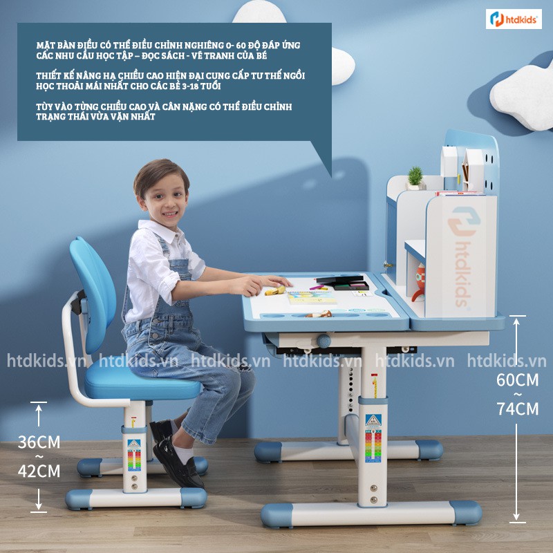 ✔ Phù hợp với mọi lứa học sinh từ mầm non tới trung học phổ thông (3 – 18 tuổi) do điều chỉnh được chiều cao bàn và ghế.