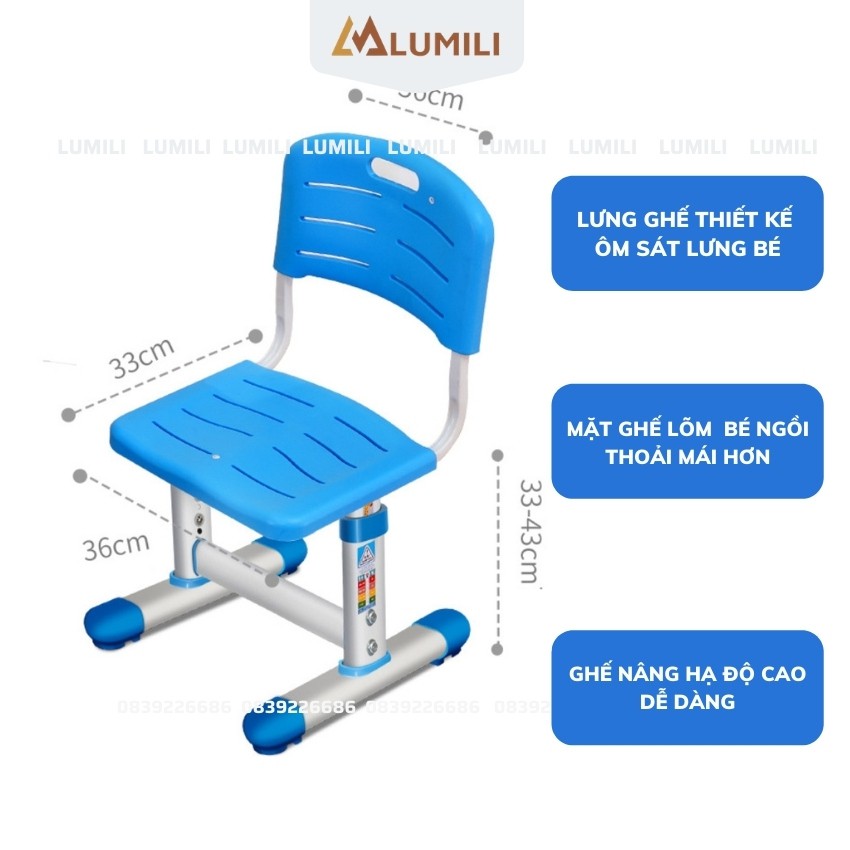 ✔ Phù hợp với mọi lứa học sinh từ mầm non tới trung học phổ thông (3 – 18 tuổi) do điều chỉnh được chiều cao bàn và ghế.
