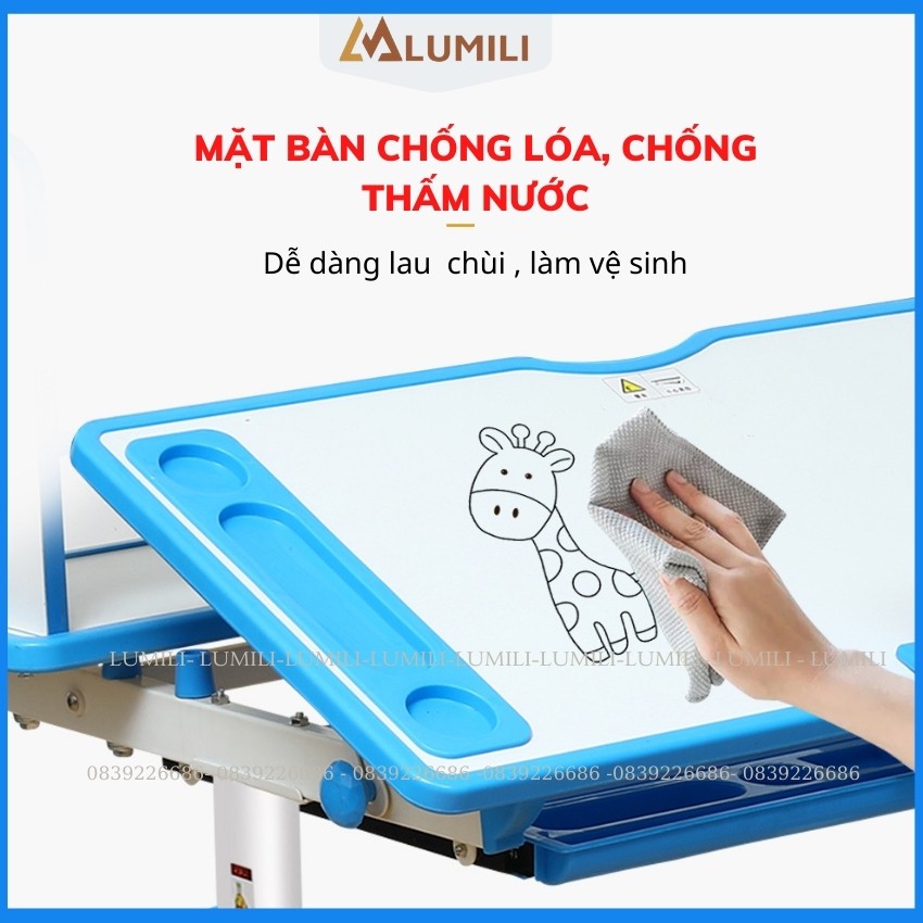 [ Tặng đèn led, kẹp sách, giá đỡ cằm ] bộ bàn học chống gù chống cận bàn học thông minh lumili R12 có giá sách size 80cm