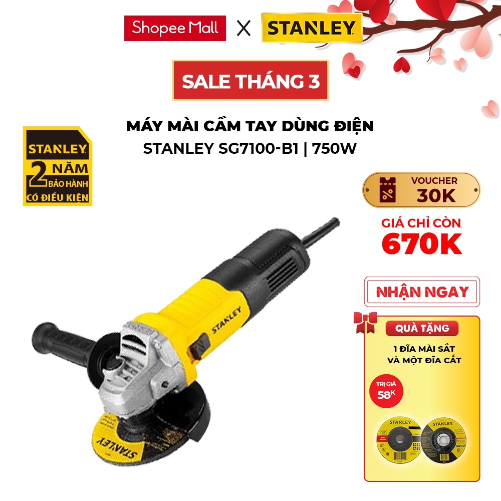 Nhà cửa & Đời sống > Dụng cụ & Thiết bị tiện ích > Dụng cụ > Cưa, máy cắt & máy mài || [TẶNG ĐĨA] Máy mài cầm tay dùng điện Stanley SG7100-B1 | 750W | Bảo hành 2 năm | Chính hãng | Thay thế cho mã STGS6100Còn hàng