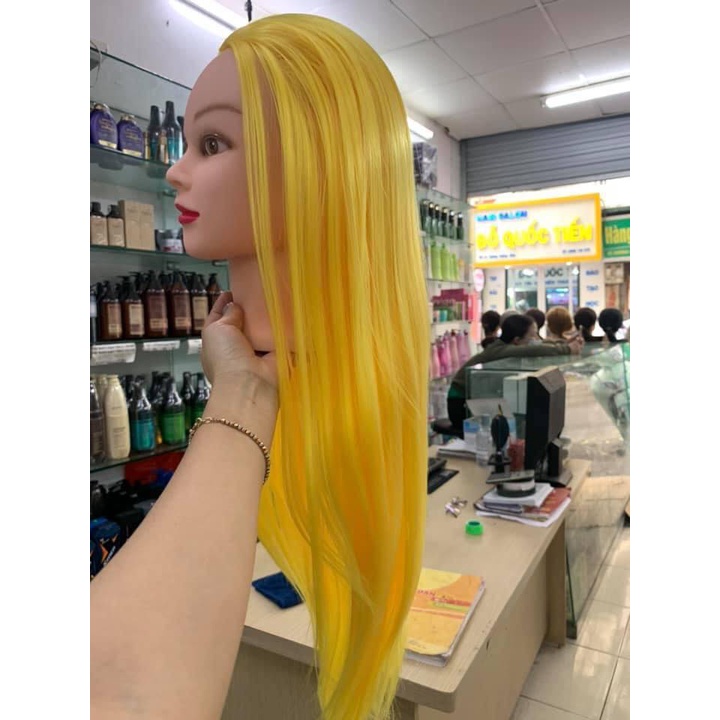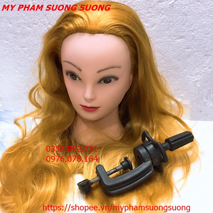 Bộ sản phẩm bao gồm: 01 đầu manocanh tóc màu vàng sáng trắng + 01 eto (Kệ gá) đầu manocanh1.Đầu manocanh màu vàng sáng, ảnh thật, tự chụp bằng điện thoại Iphone nhá anh chị em