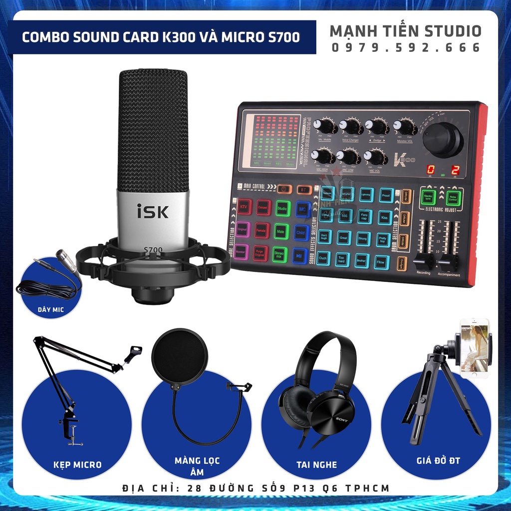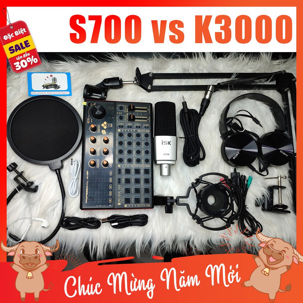 [tặng full phụ kiện] Combo Mic Thu Âm S700 + SoundCard K3000 + full phụ kiện livestream karaoke thu âm xịn sò cao cấp