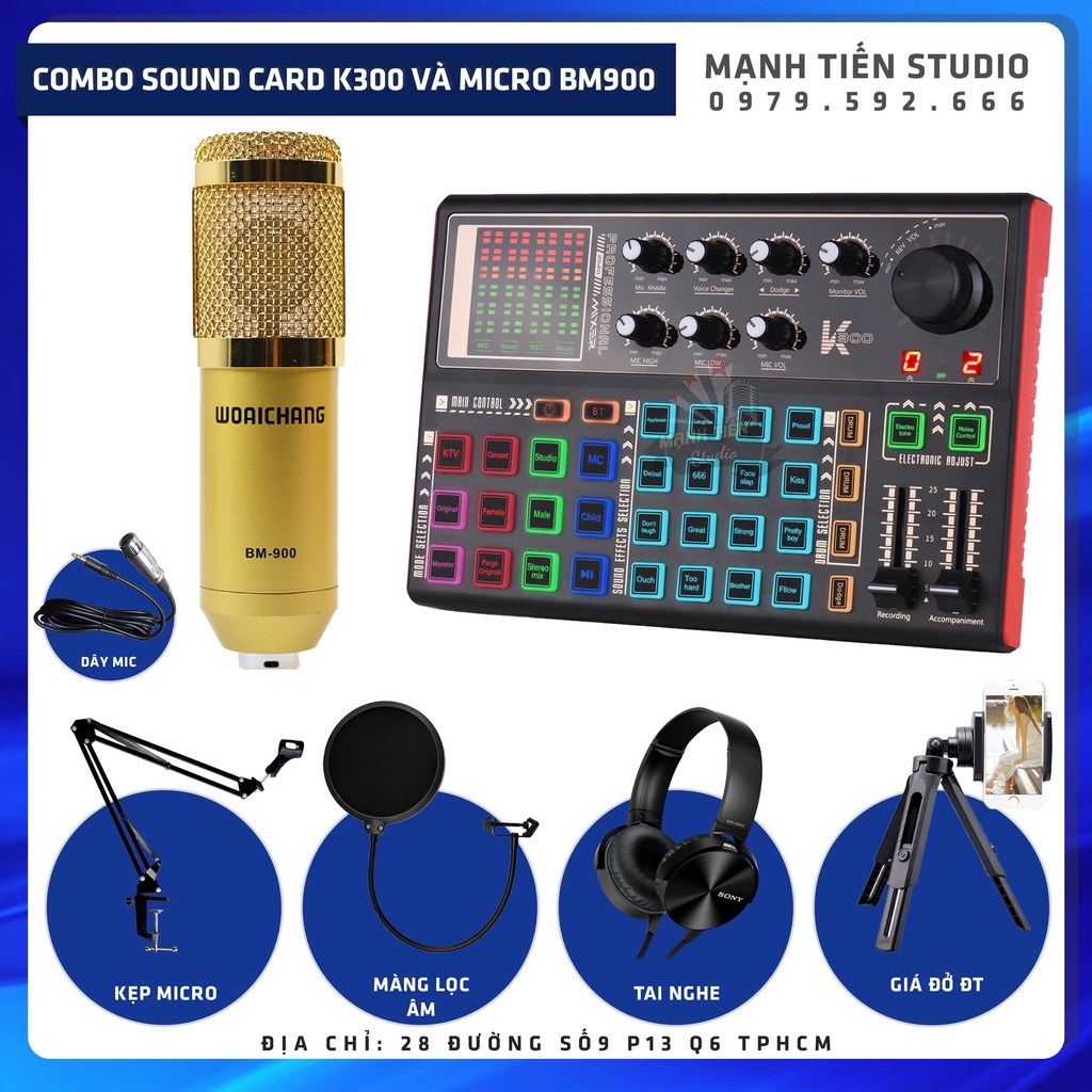 [tặng full phụ kiện] trọn bộ combo micro BM900 + sound card K3000 + full phụ kiện livestream karaoke thu âm chuẩn bh 12t