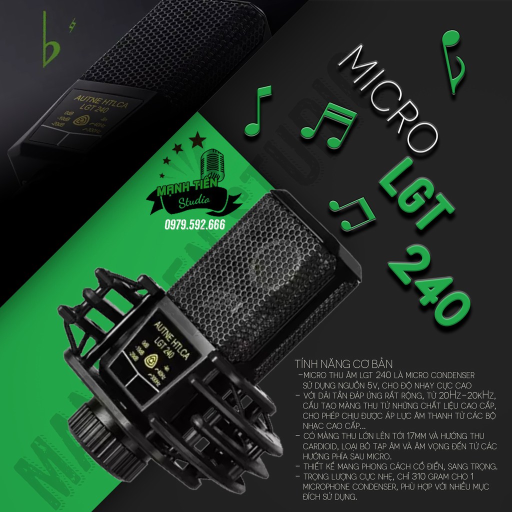 Micro thu âm LGT 240 là micro condenser sử dụng nguồn 5v, cho độ nhạy cực cao